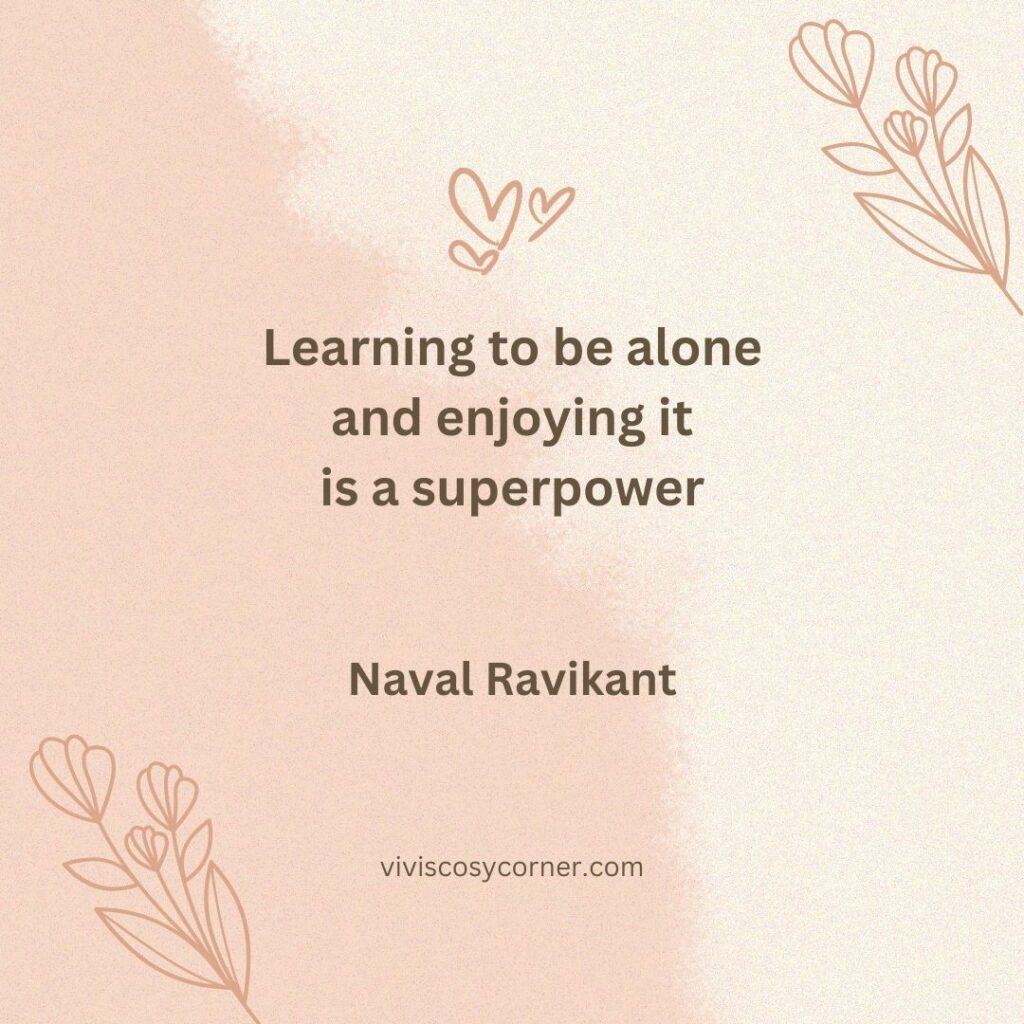 Spending time alone in your own company reinforces your self-worth and is often the number-one way to replenish your resilience reserves.”